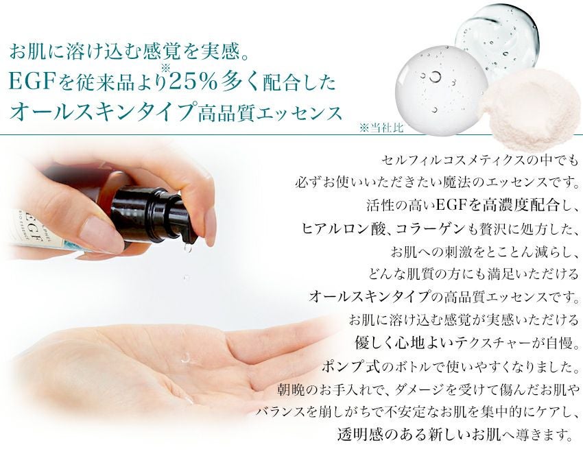 他の画像を見る EGF化粧品 CELLPHEL COSMETICS会員ポイント10~25% グロースファクターEGF美容液『セルフィル バイオエッセンス 分包(1mLx10包)』 価格 ¥ 1,000 税込 詳細を見る お気に入りに登録する