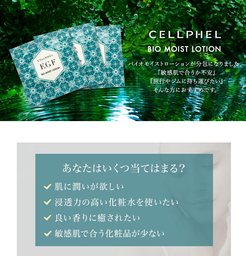 他の画像を見る EGF化粧品 CELLPHEL COSMETICS会員ポイント10~25倍 『セルフィル バイオモイストローション 分包(1mLx10包)』 価格 ¥ 1,000 税込 詳細を見る お気に入りに登録する