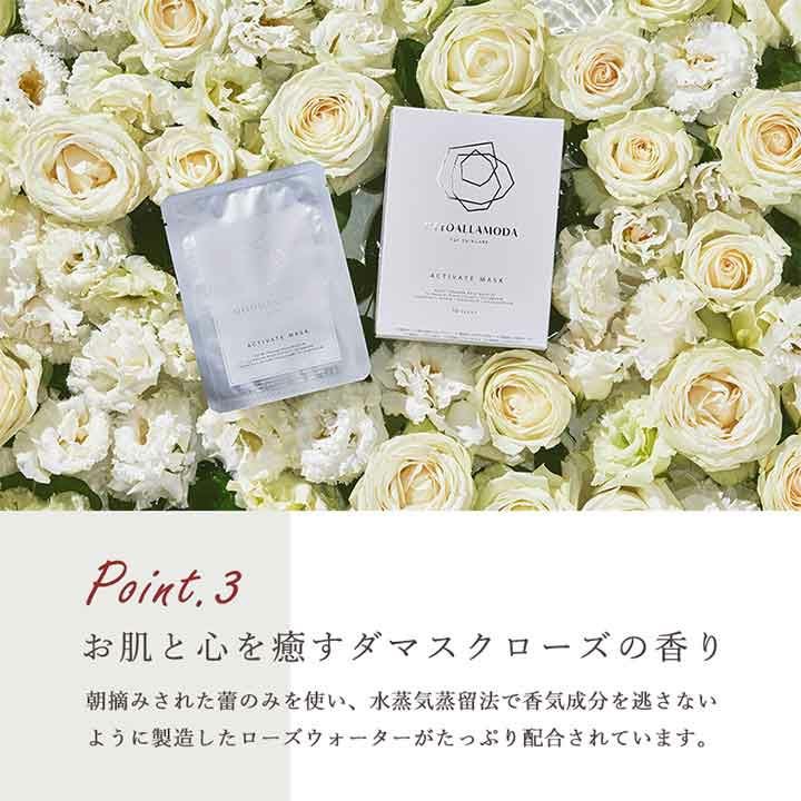 他の画像を見る ダマスクローズウオーターにEGFと32種類の植物エキスを配合 フェイスマスク『オットーアラモーダ アクティベイトマスク』1箱10枚入り(個包装) 価格 ¥ 3,960 税込 詳細を見る お気に入りに登録する
