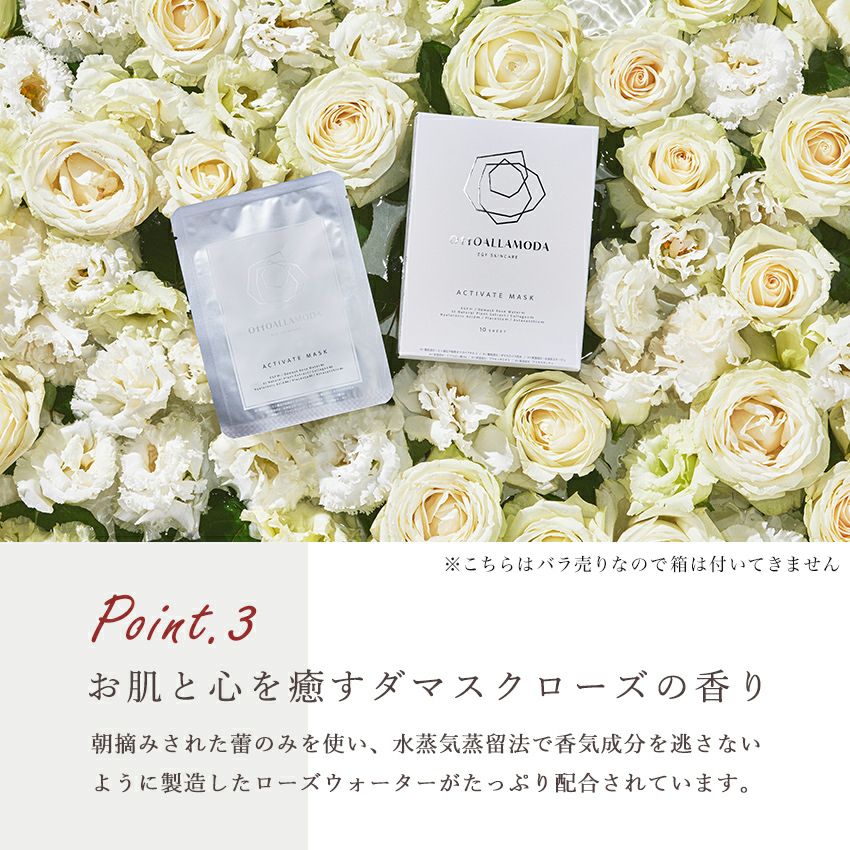 他の画像を見る ダマスクローズウオーターにEGFと32種類の植物エキスを配合 フェイスマスク『オットーアラモーダ アクティベイトマスク』 3枚入り(個包装・箱無し・3包) 価格 ¥ 1,000 税込 詳細を見る お気に入りに登録する